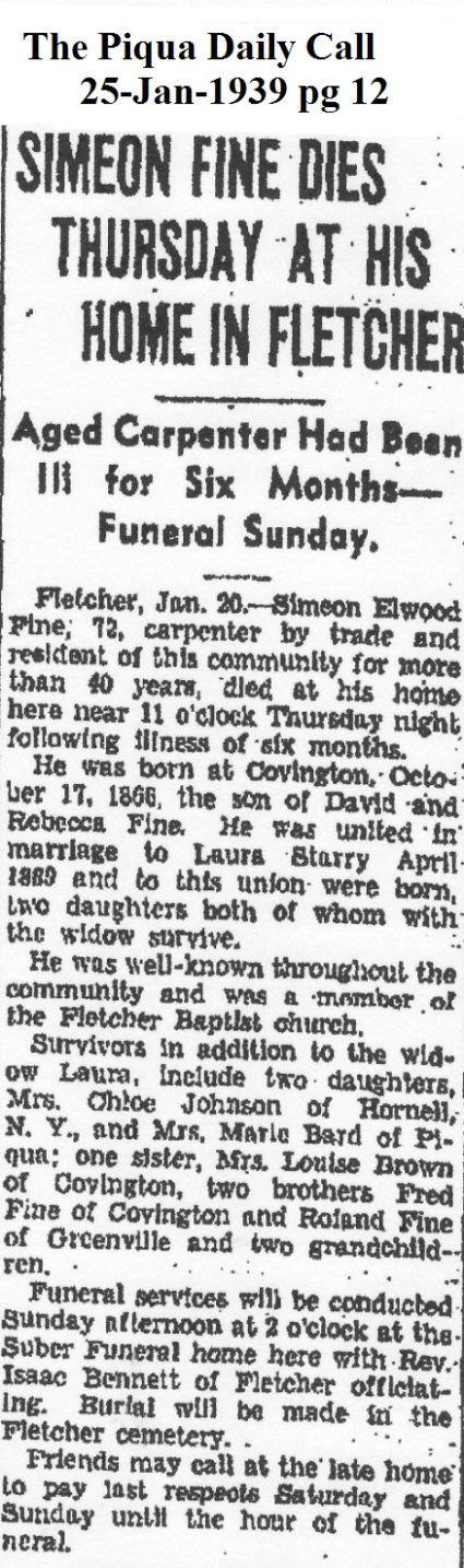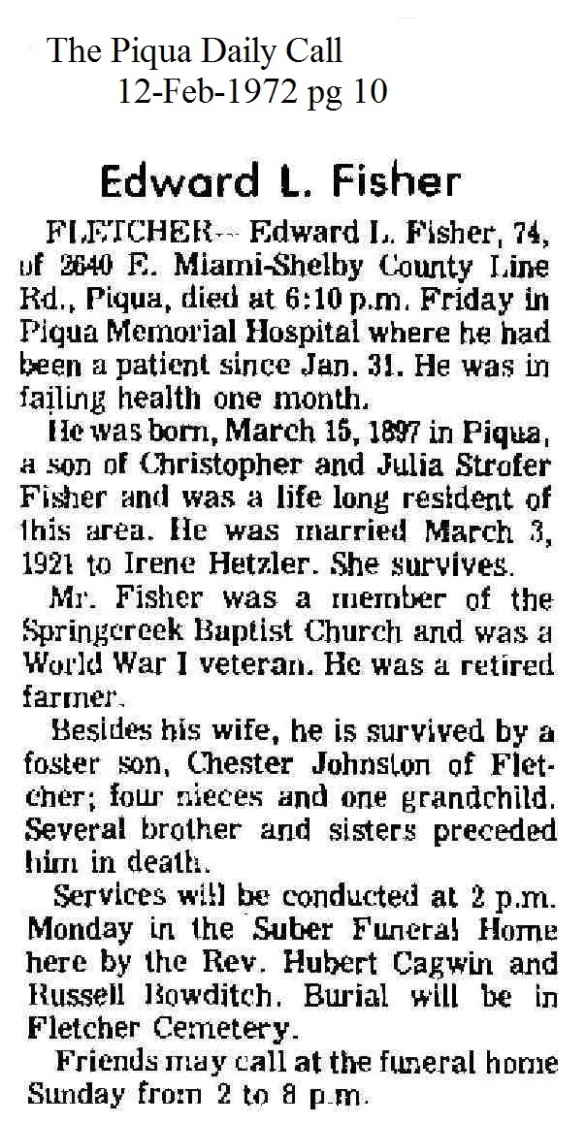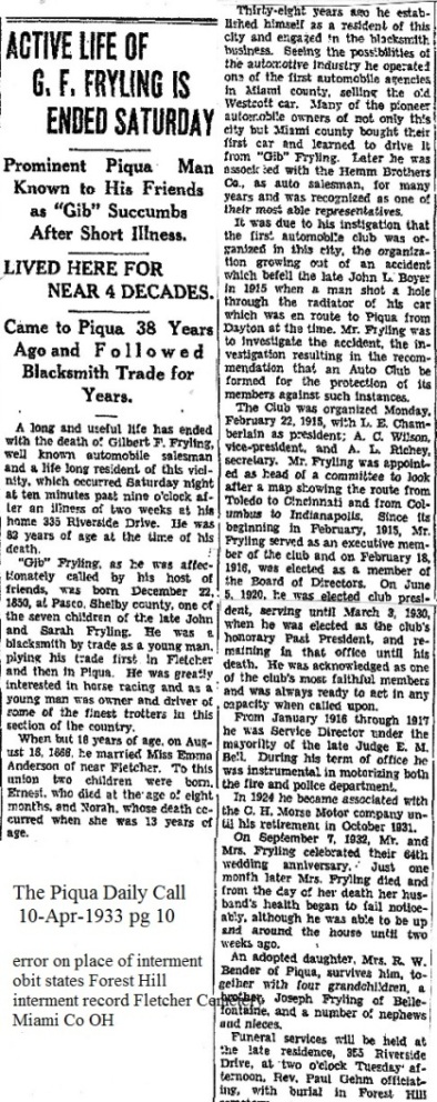 FLESH, Henry - Prominent Piqua Man Dies June 5, 1919