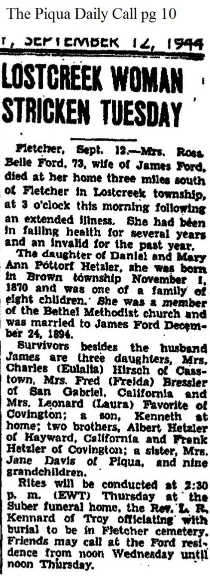 Ford, Rosa Belle (Hetzler) September 12, 1944
