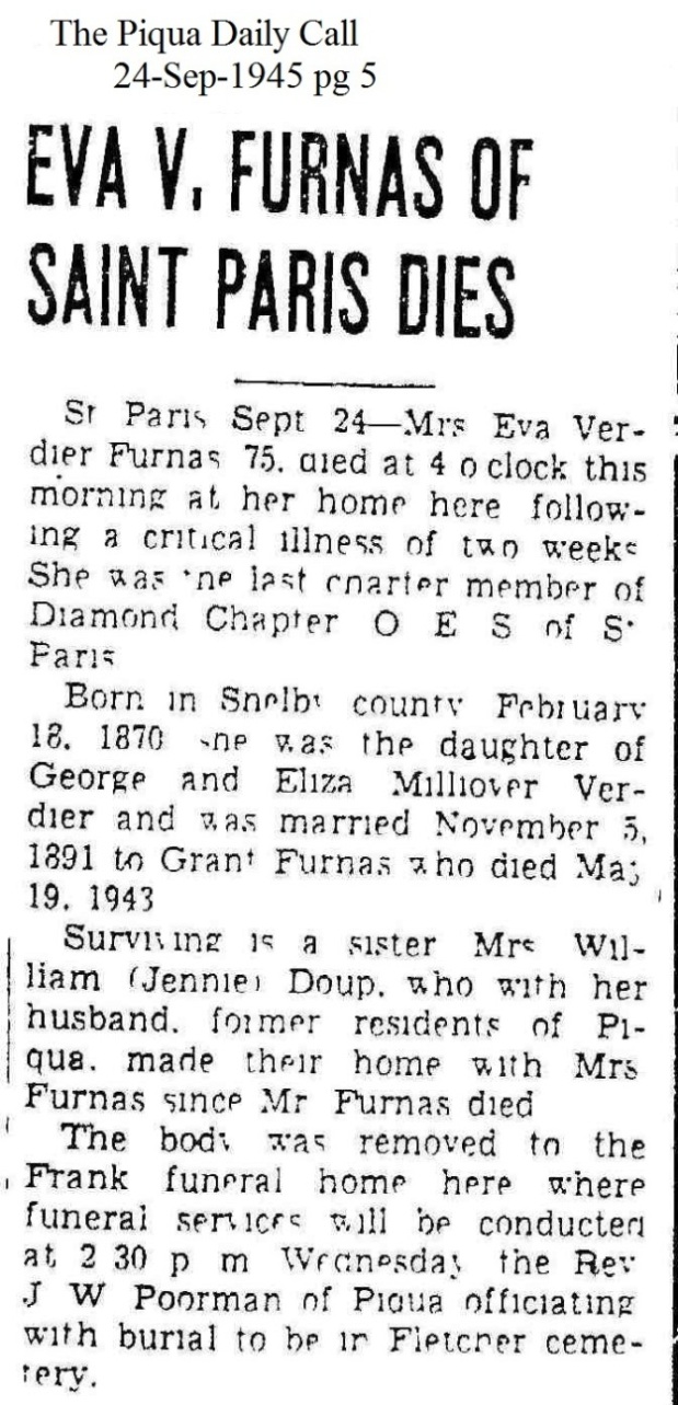Furrow, Mary Ellen "Ella" (Sills) May 10, 1933
