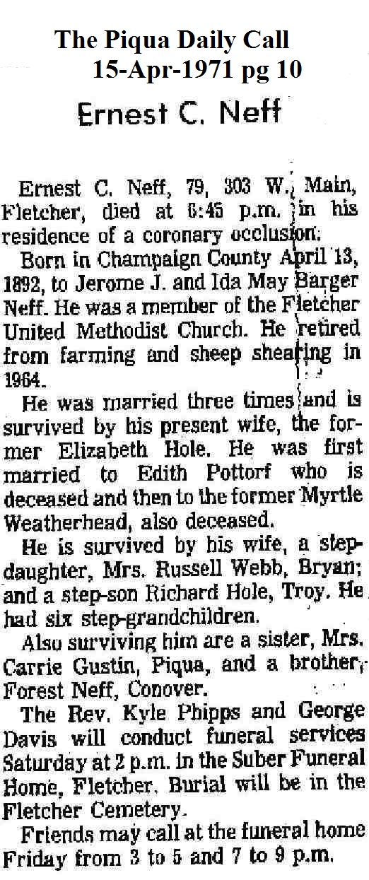 Neff, Ernest C April 10, 1971