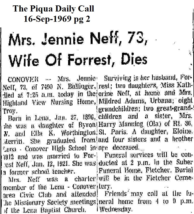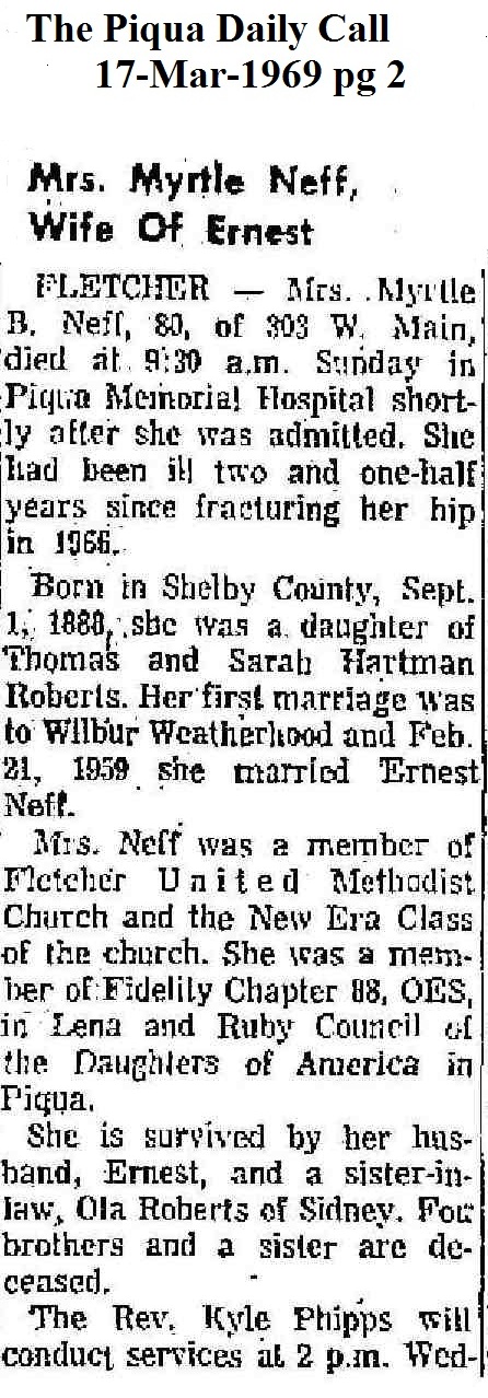 Neff, Myrtle B March 17, 1969