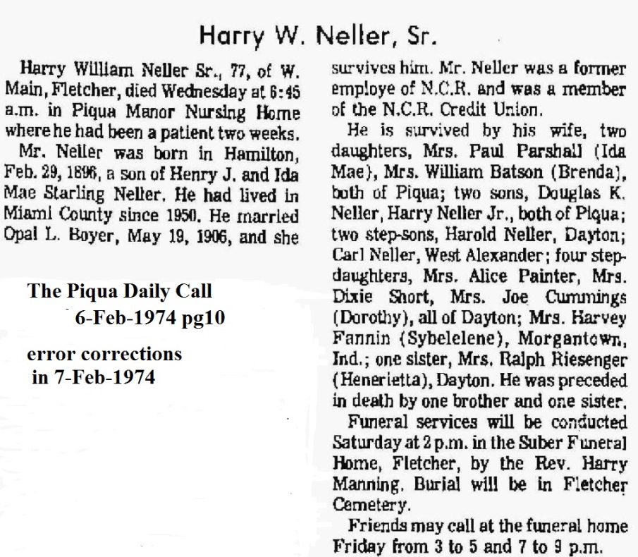 Neller, Harry William Sr. February 6, 1974