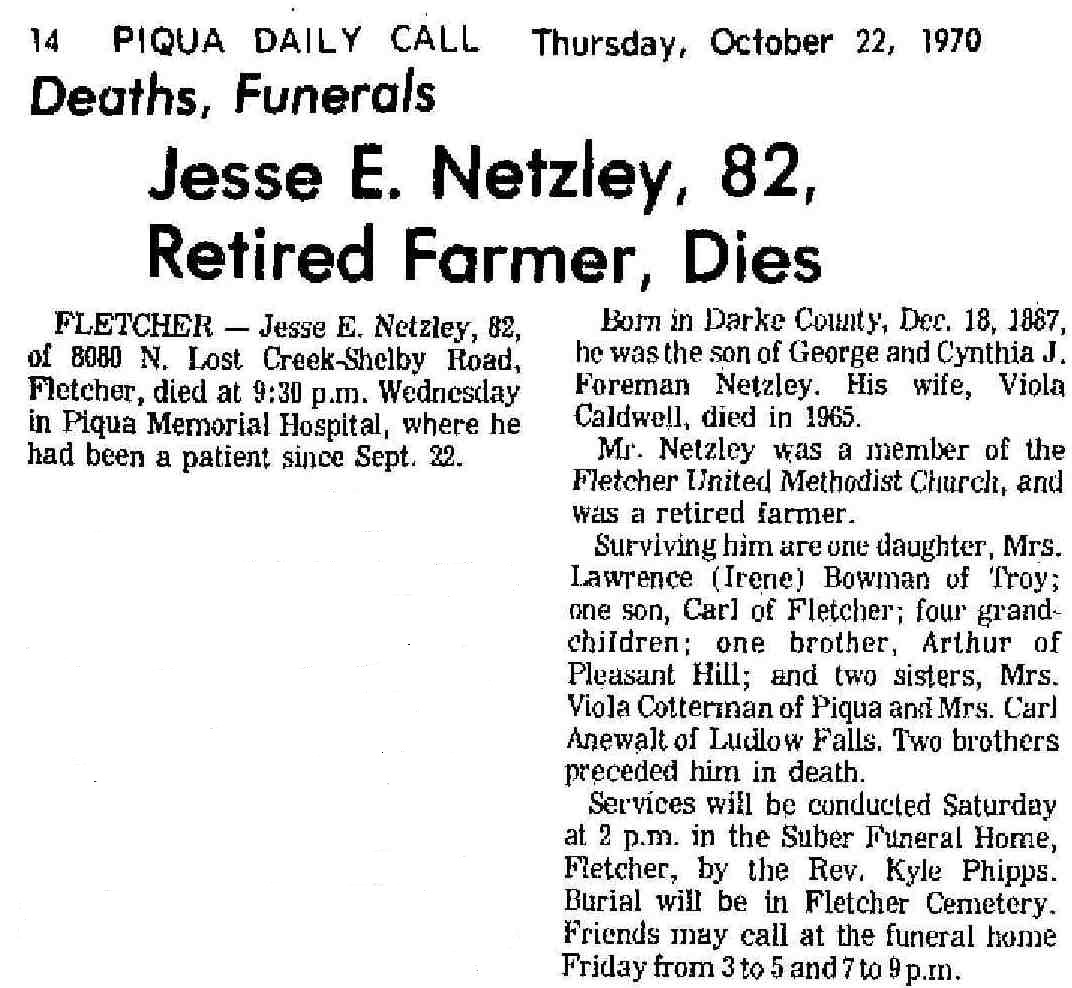 Netzley, Jesse E October 22, 1970