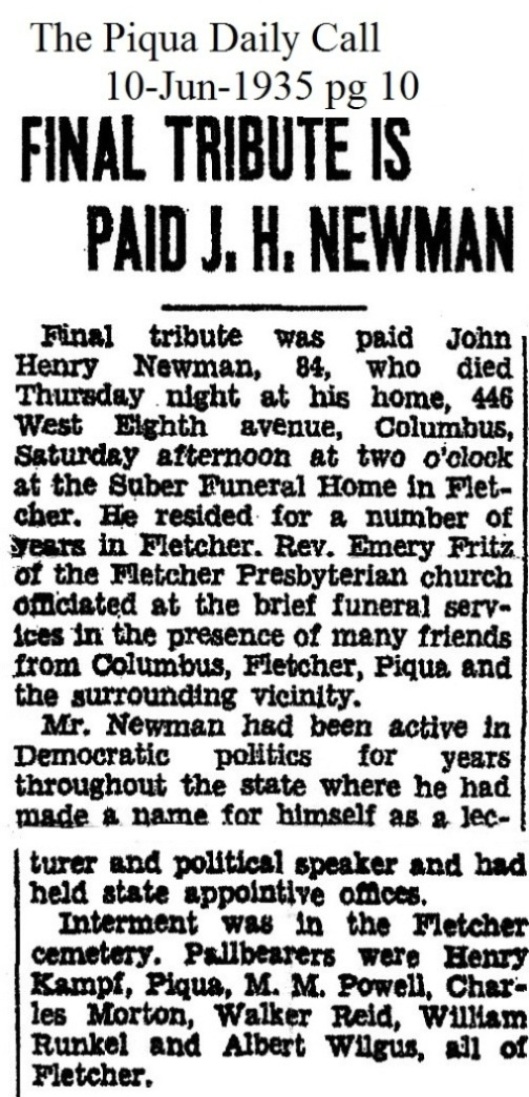 Newman, John Henry June 7, 1935