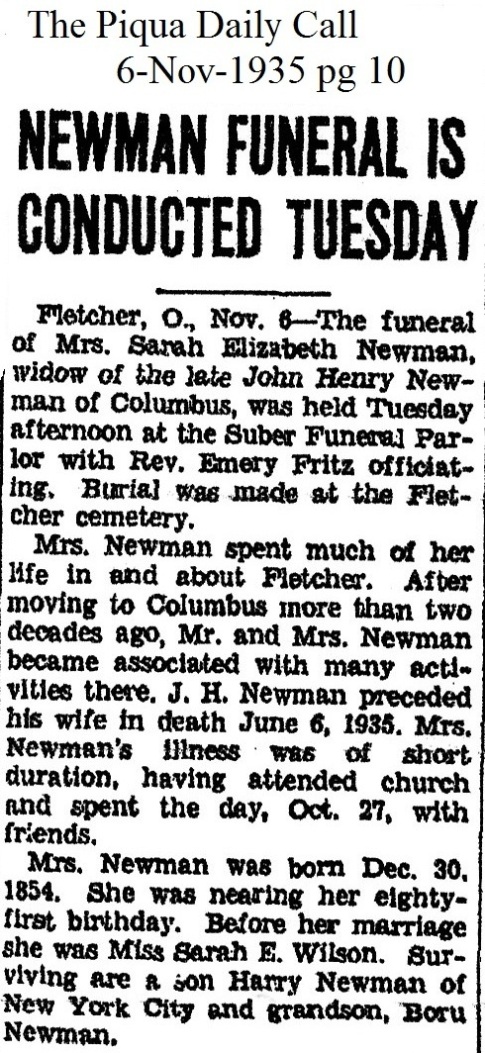 Newman, Sarah Elizabeth (Wilson) November 6, 1935