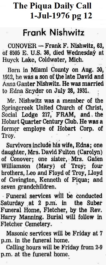 Nishwitz, Franklin F July 1, 1976
