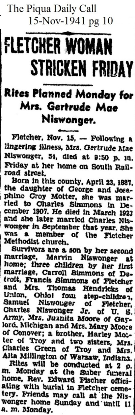 Niswonger, Gertrude Mae (Motter) November 15, 1941