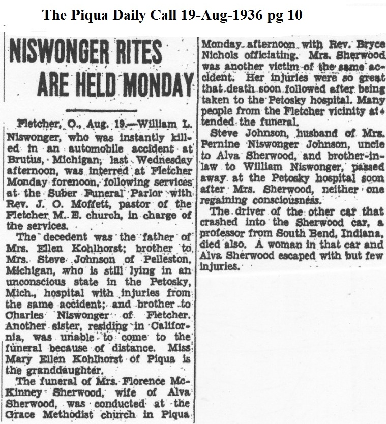 Niswonger, William L August 19, 1936