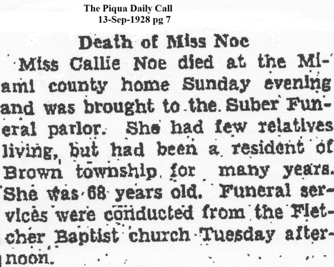 Noe, Caroline M "Callie" September 14, 1928