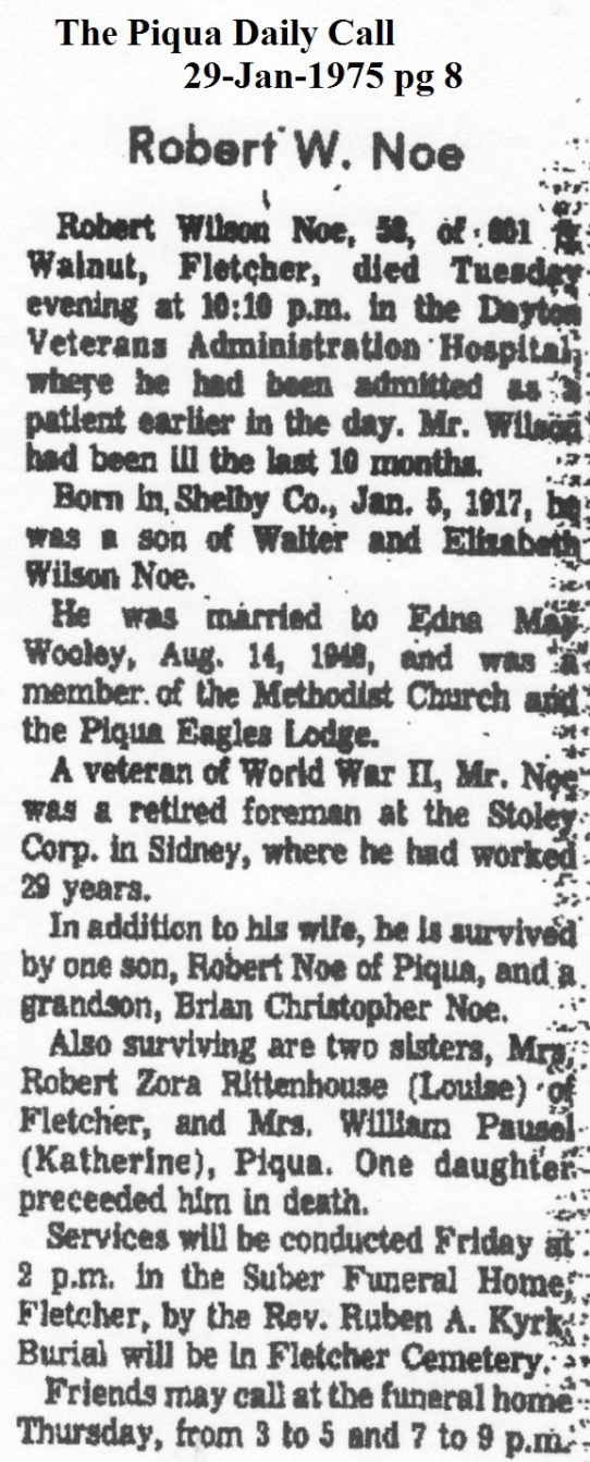 Noe, Robert Wilson January 29, 1975