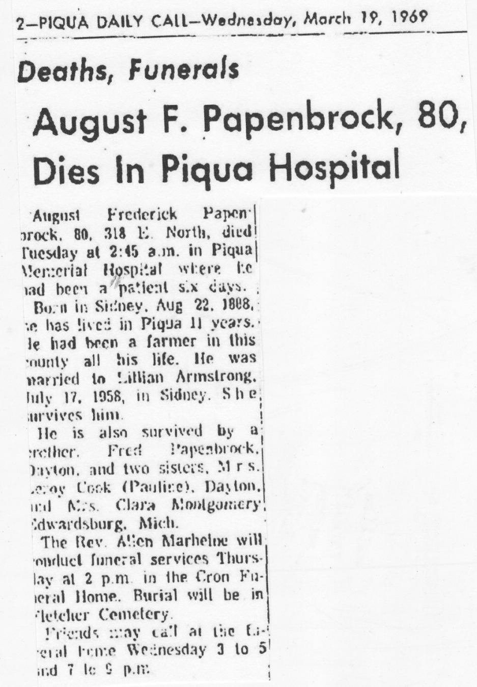 Papenbrock, August Frederick March 19, 1969 |