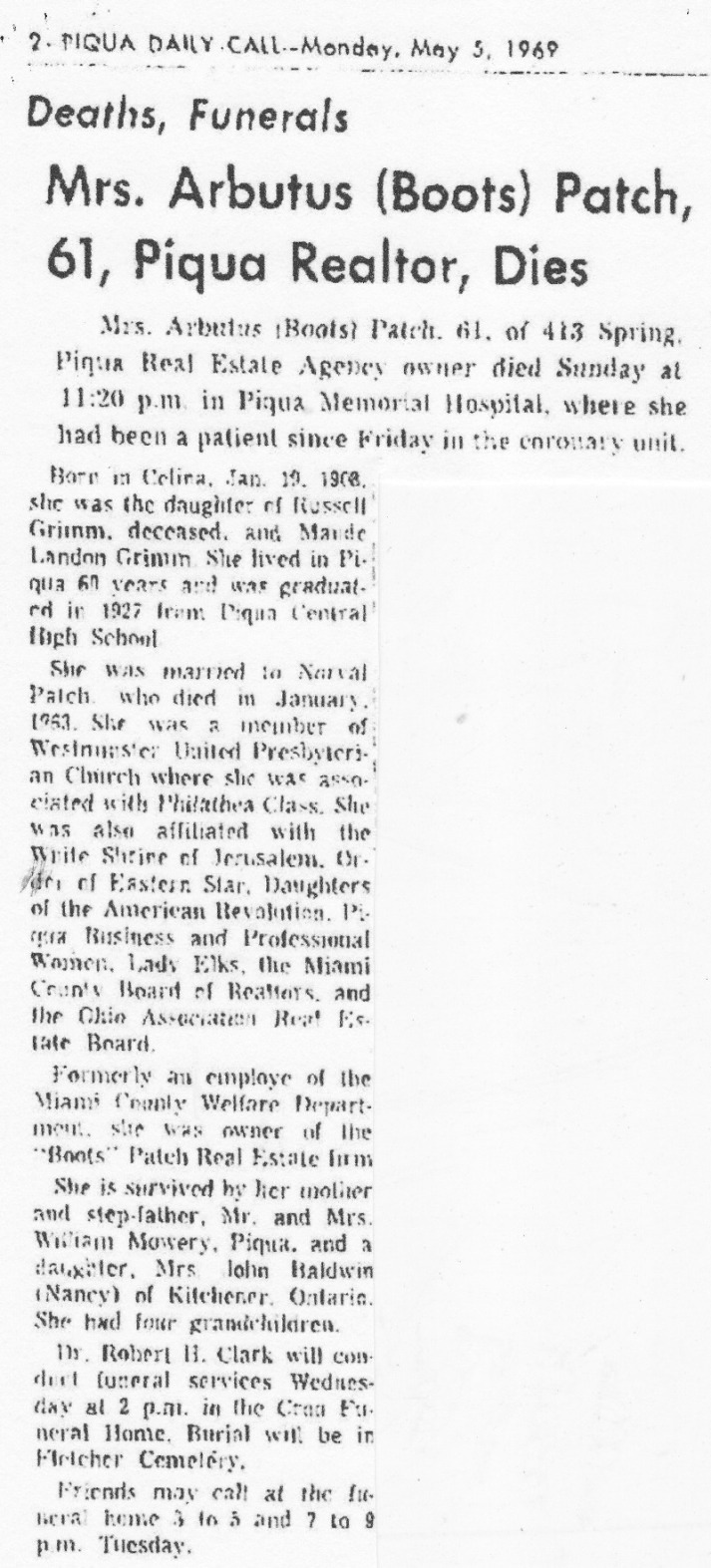 Patch, Arbutus (Grimm) May 5, 1969 |