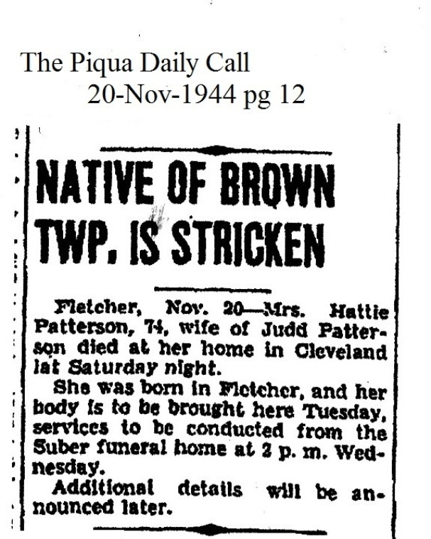 Patterson, Hattie B (Luce) November 20, 1944 |