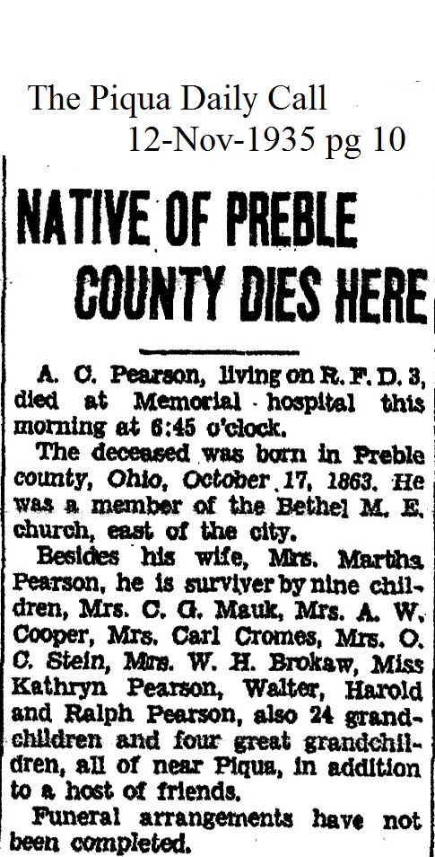 Pearson, Arthur Clement November 12, 1935 |