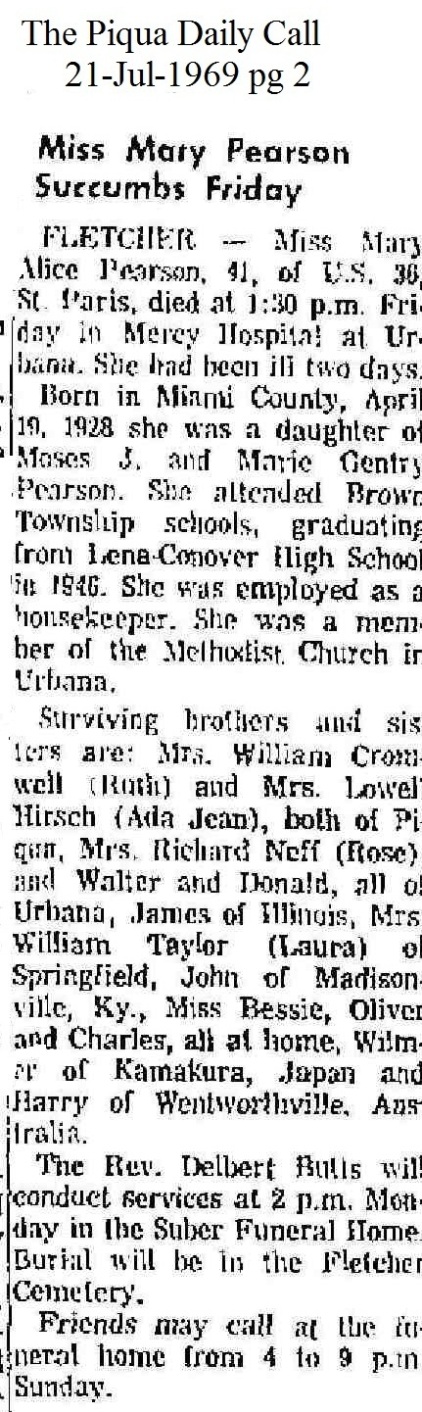 Pearson, Mary Alice July 21, 1969 |