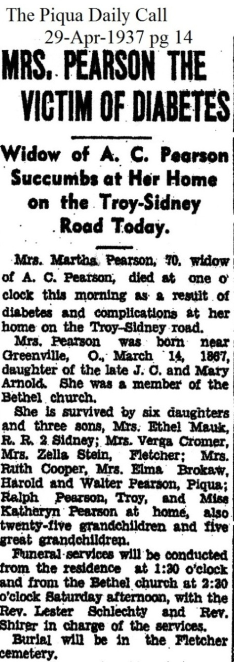 Pearson, Martha (Arnold) April 29, 1937 |