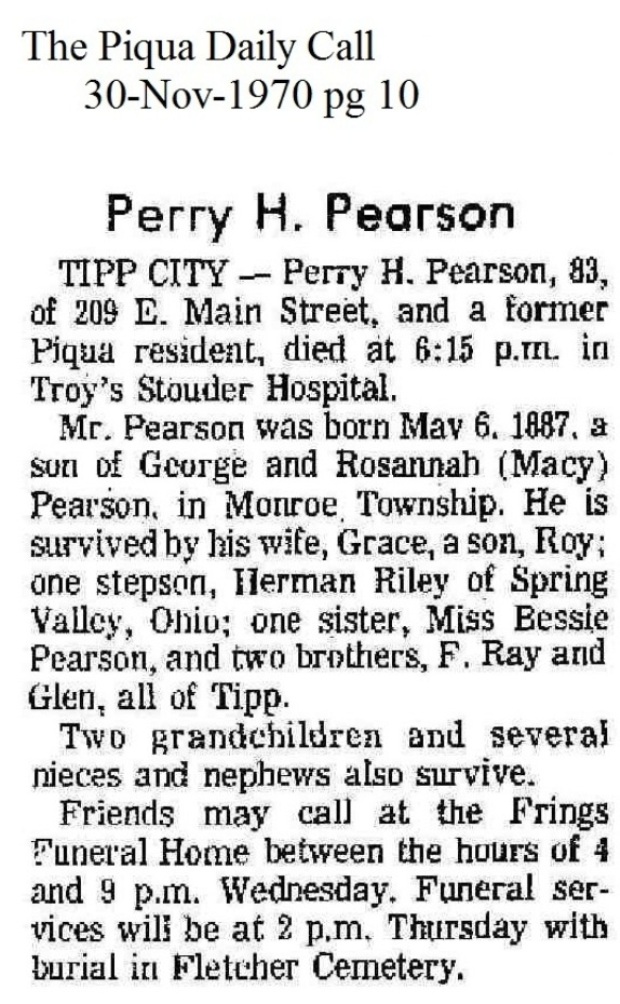 Pearson, Perry Harrison November 30, 1970 |