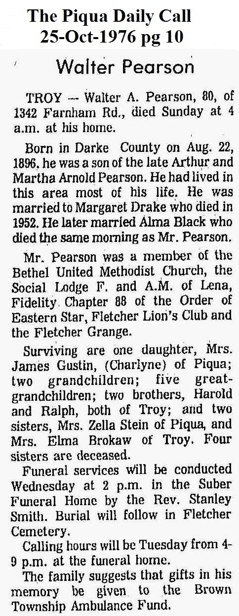 Pearson, Walter Arthur October 25, 1976 |