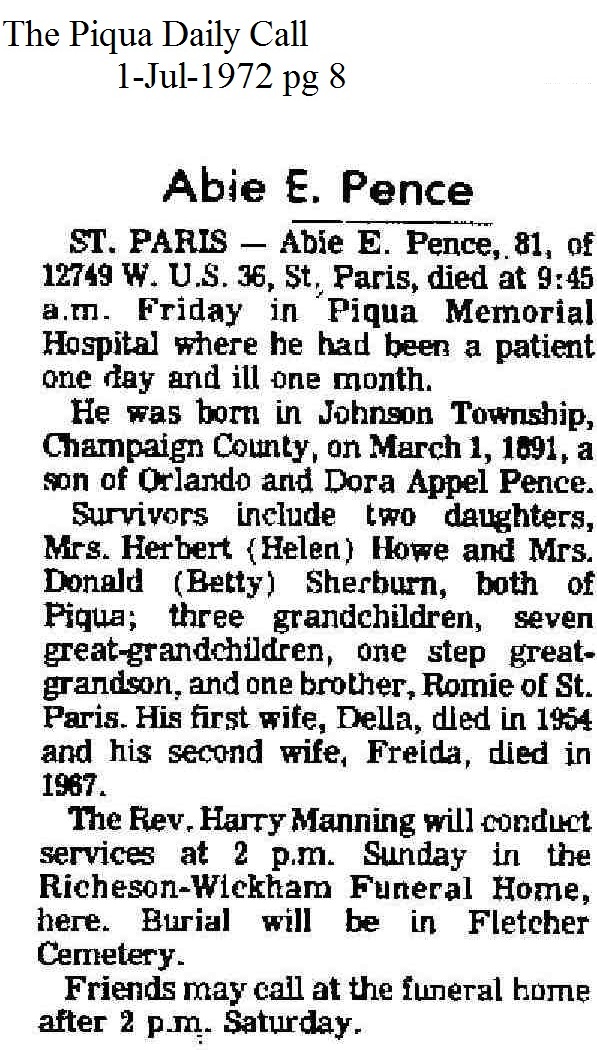 Pence, Abie Eli July 1, 1972 |