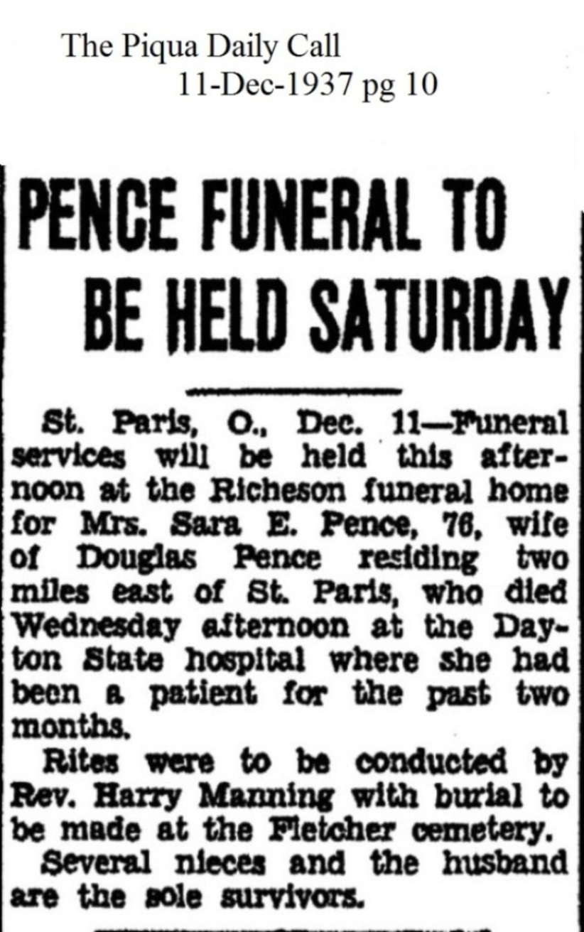 Pence, Sarah Elizabeth (Brecount) December 11, 1937 |