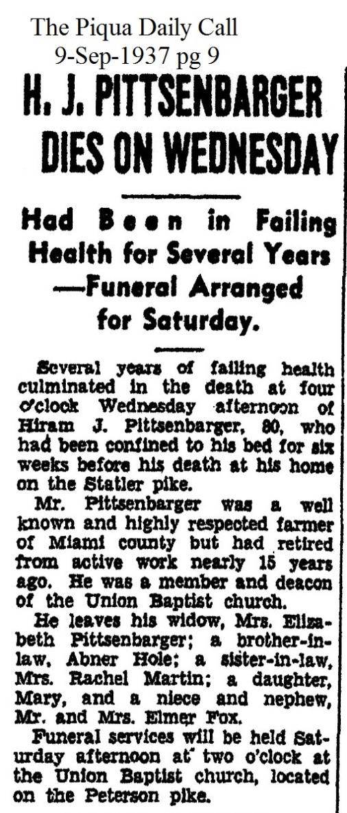 Pittsenbarger, Hiram Jackson September 9, 1937 |