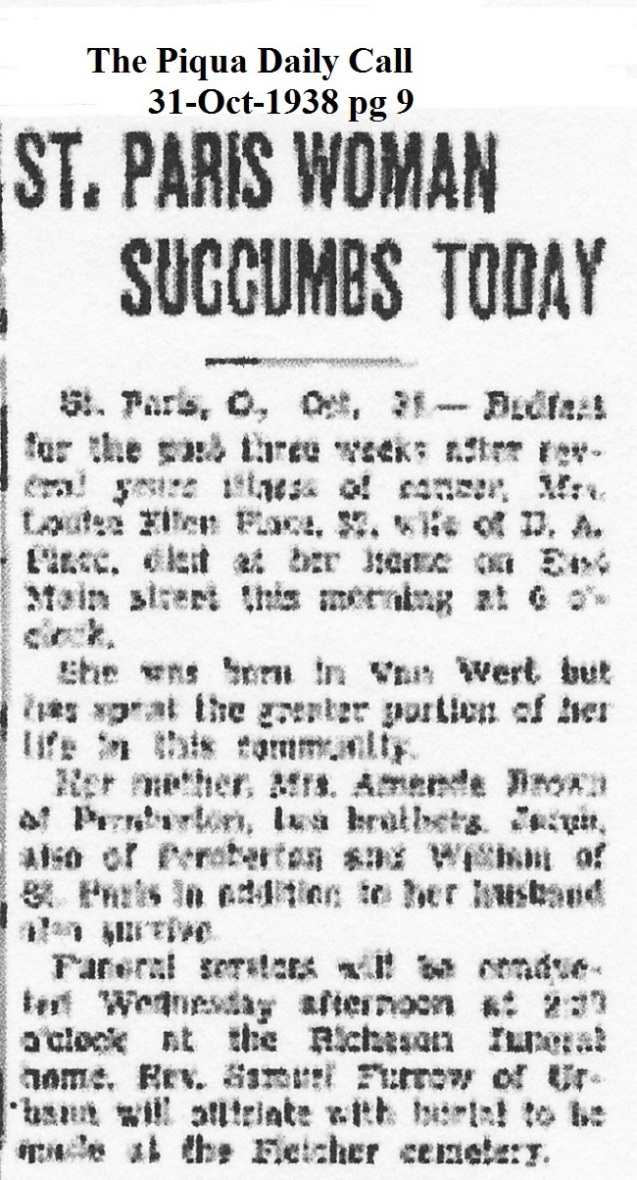 Place, Louisa Ellen (Brown) October 31, 1938 |
