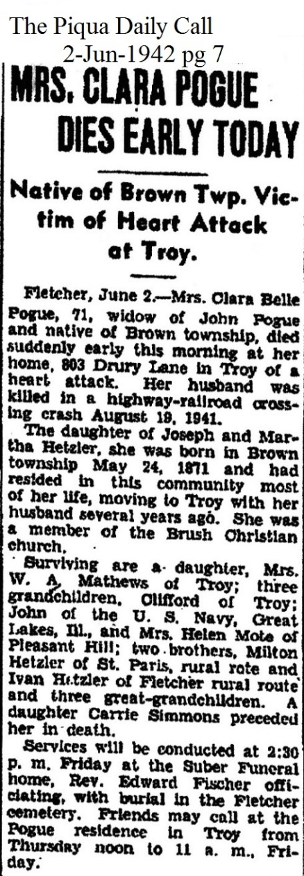 Pogue, Clara Belle (Hetzler) June 2, 1942 |