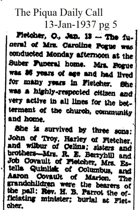 Pogue, Elizabeth Caroline (Covault) January 13, 1937 |