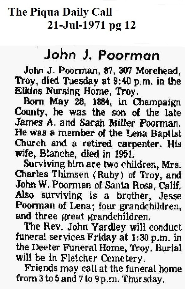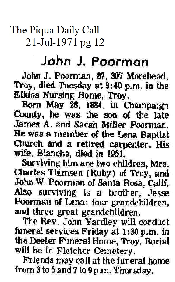 Poorman, John Jacob July 21, 1971 |