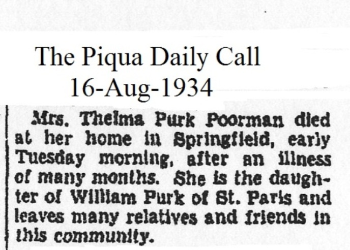 Poorman, Thelma (Purk) August 16, 1934 |