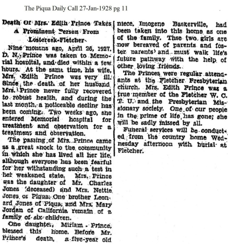 Prince, Edith (Jones) January 28, 1928 |