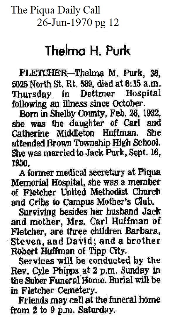 Purk, Thelma May (Huffman) June 26, 1970 |