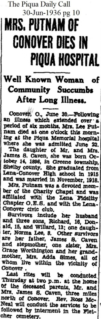 Putnam, Marvel Floss (Caven) June 30, 1936 |