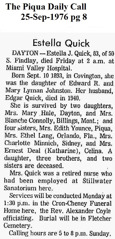 | Quick, Estella Mae (Johnston) September 25, 1976 | Image 255K | Aug 2012 | Karen Johnson-Heber |