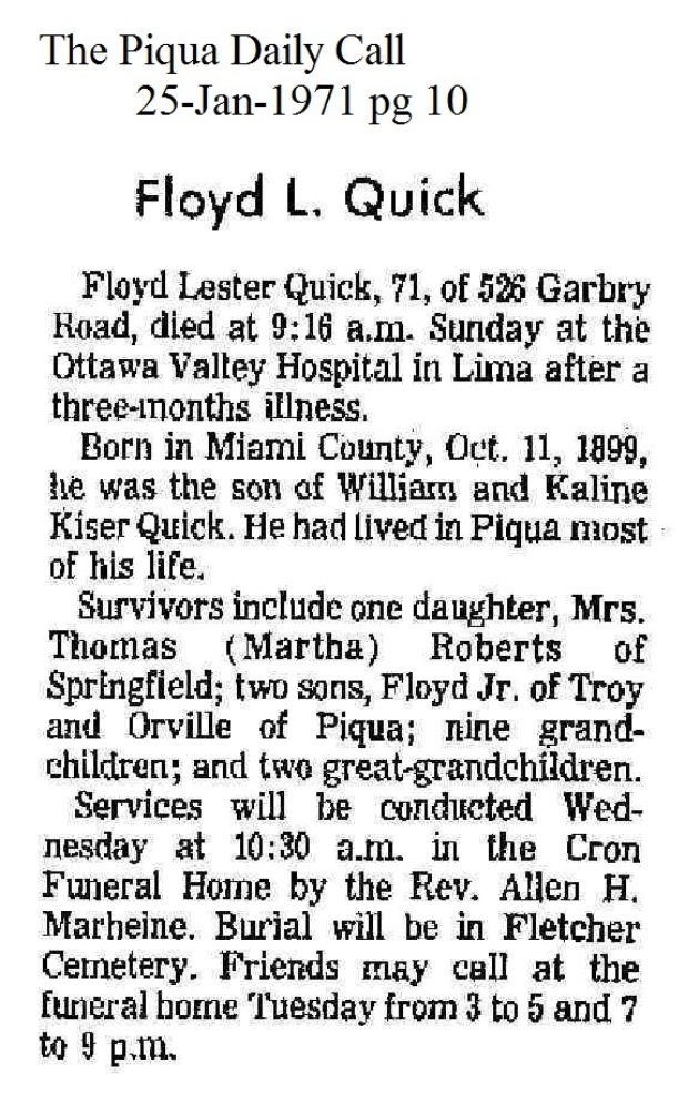 | Quick, Floyd Lester January 25, 1971 | Image 243K | Mar 2012 | Karen Johnson-Heber |