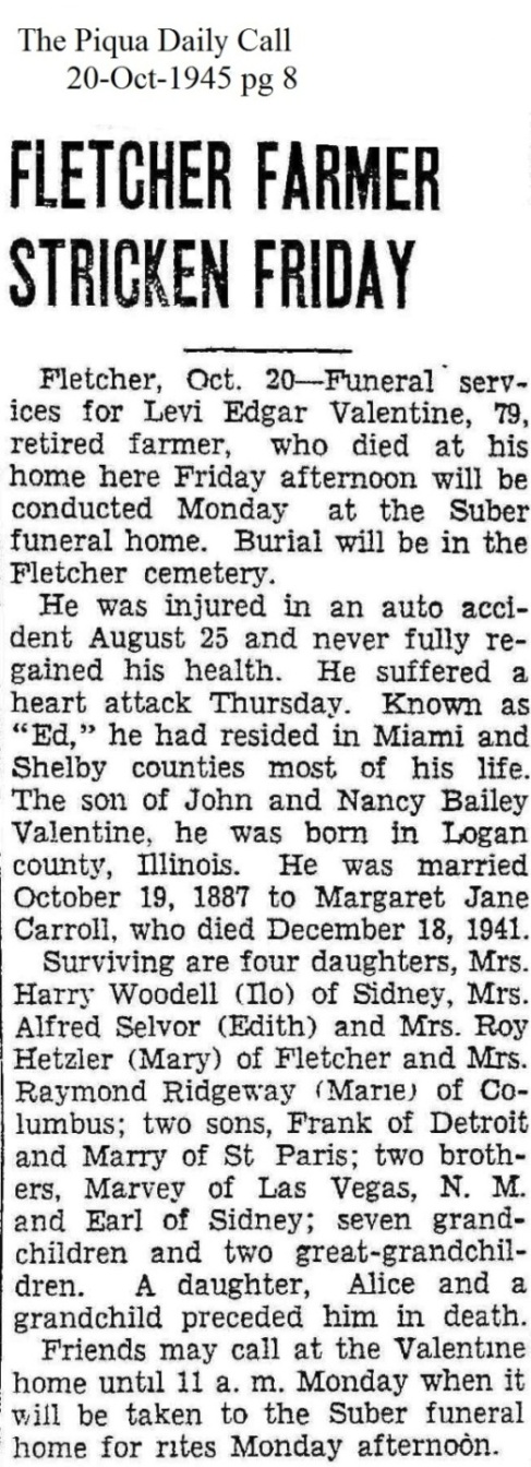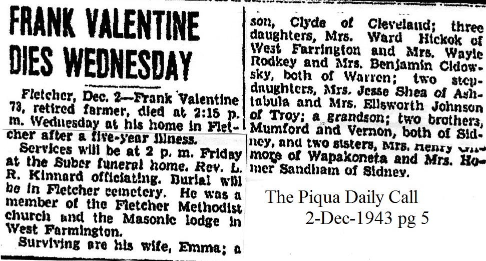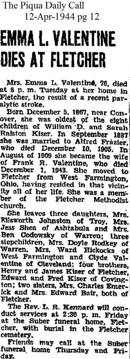 Valentine, Emma L Fraizer (Kiser) April 12, 1944