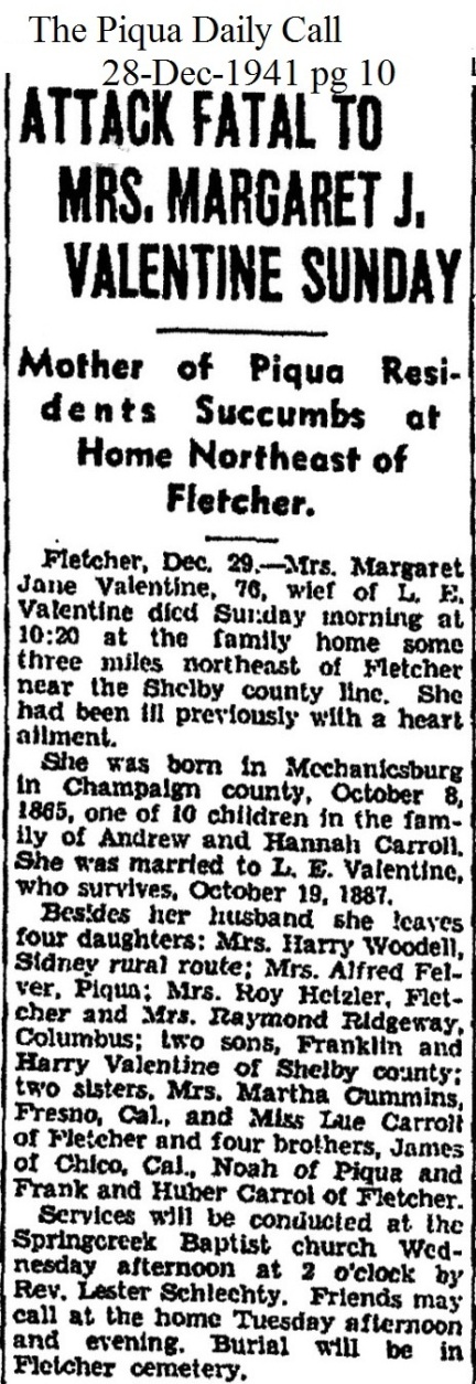 Valentine, Margaret Jane (Carroll) December 28, 1941