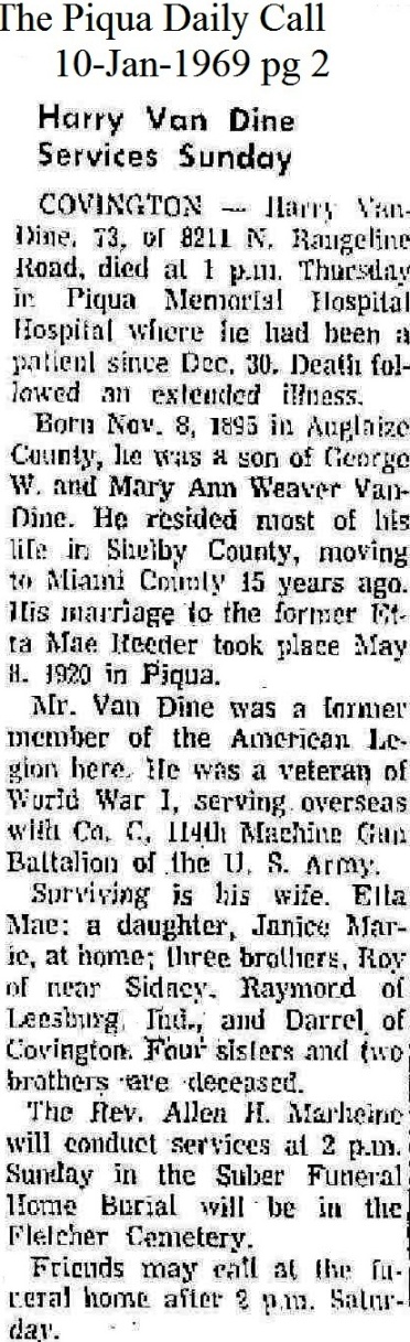 Van Dine, Harry January 10, 1969