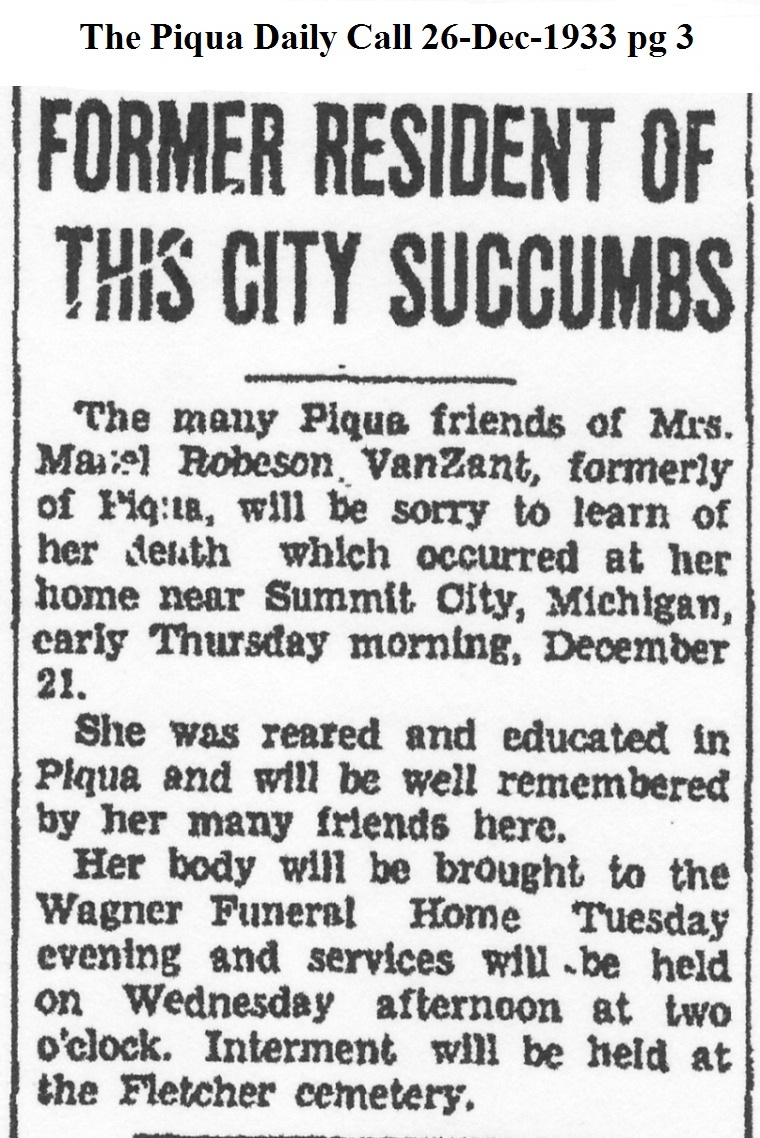 Vanzant, Mabel Lavonia (Robeson) December 26, 1933